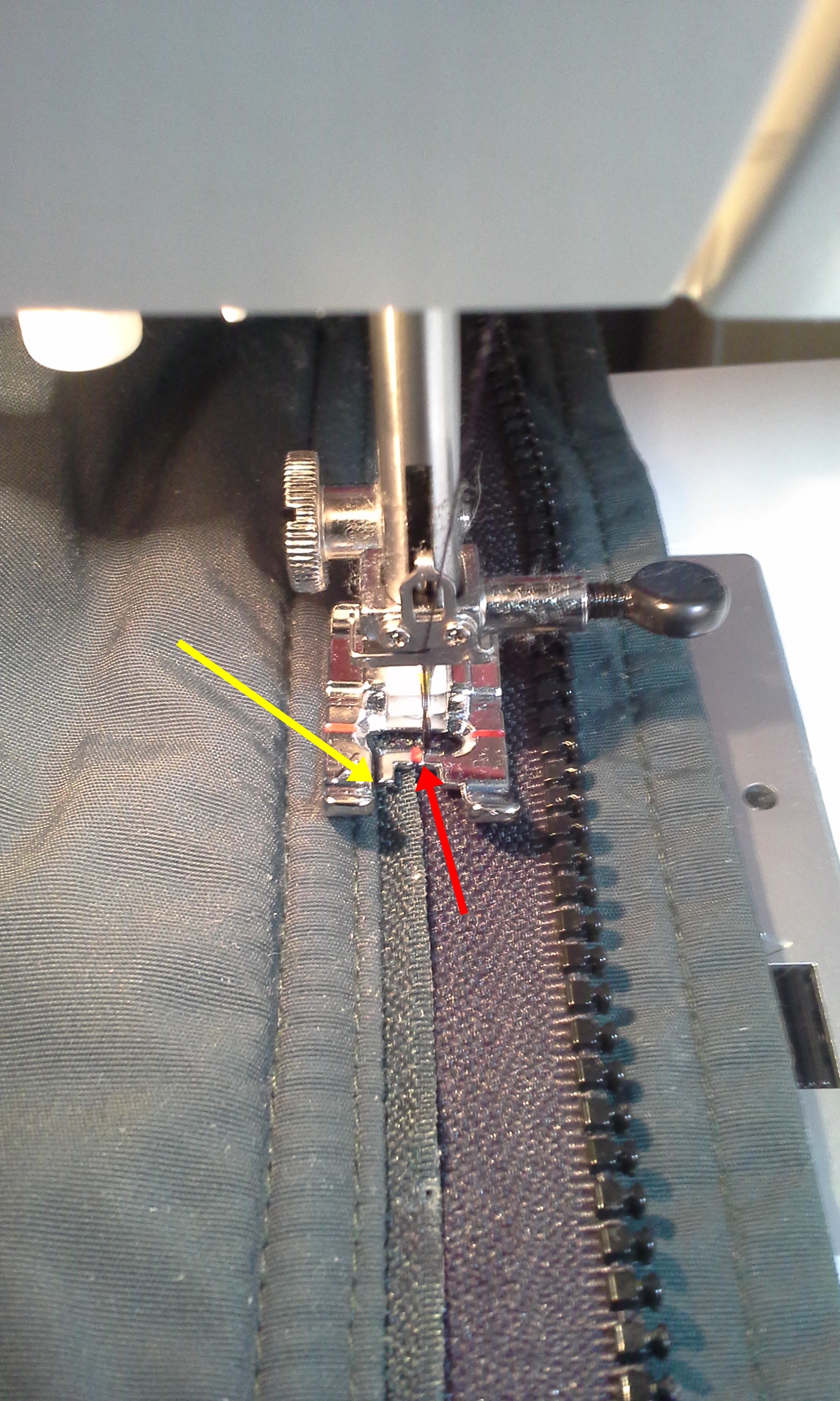 For the first zipper, this worked great. But I replaced two zippers. The second jacket did not stayed lined up. The coat itself, stretched as I stitched. You probably could use a walking foot. Not sure how it would work with all those layers. I’ll try it next time. I’m sure it’s not the last zipper I’ll replace.