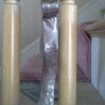 Once I had all the layers on and dry, I needed to paint. Living in New England, the weather forced a delay in painting as I wanted to paint it outside. It needs to be a bit warmer than New England in February to spray paint. I decided upon the Rustoleum Hammered Bronze Paint. My husband is very good with spray paint. He put the primer on for me. Then I put on the Hammered finish. It doesn’t look very hammered. There is a fine line when using the hammered finish. You need to put it on heavy enough to allow some of the paint to sink. But not so heavy that is runs. I didn’t get it heavy enough. I will try another coat. But for now, I like it.
