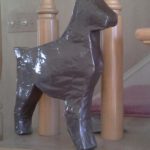 I know it’s April. But I finally finished the February project. February’s category was something tactile. So I decided upon paper mache. There is a local artist who makes metal dog sculptures. I’ve always loved them, but they are out of my price range. So why not make something out of paper mache.